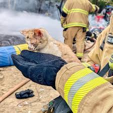 Caught in the inferno, this fragile creature somehow managed to survive the flames. With quick and compassionate hands, Brown cradled the kitten against his chest, offering warmth and comfort in the midst of the destruction. His tender care was a beacon of hope in the darkest of moments, a reminder that even in the face of overwhelming adversity, kindness can shine through. ๐ซถ