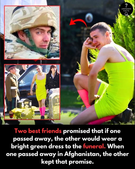 In 2009, Private Kevin Elliott, a young soldier of 24 from the Black Watch regiment, tragically lost his life in a Taliban ambush while serving in Afghanistan. Before his untimely death, Kevin and his closest friend, Barry Delaney, shared a lighthearted yet deeply meaningful promise. They vowed that if one of them passed away, the other would honor them by attending their funeral dressed in a bold and bright outfit — specifically, a green dress.