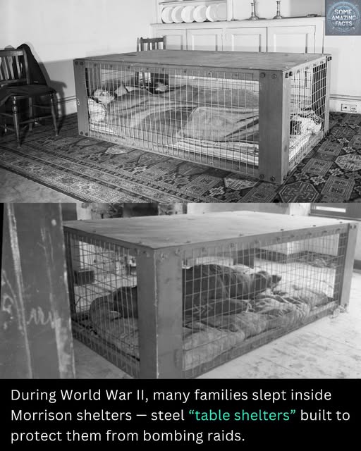 During World War II, as Britain endured the relentless onslaught of bombing raids, millions of families found themselves without adequate protection. With the majority of homes lacking basements or secure structures to shield them from falling bombs, the British government provided a lifeline in the form of the Morrison Shelter. At first glance, this metal contraption seemed rather unremarkable, appearing to be nothing more than a simple metal table. But by night, it became a desperate sanctuary — a small steel cage that families would crawl into, hoping it would withstand the terrifying explosions above.