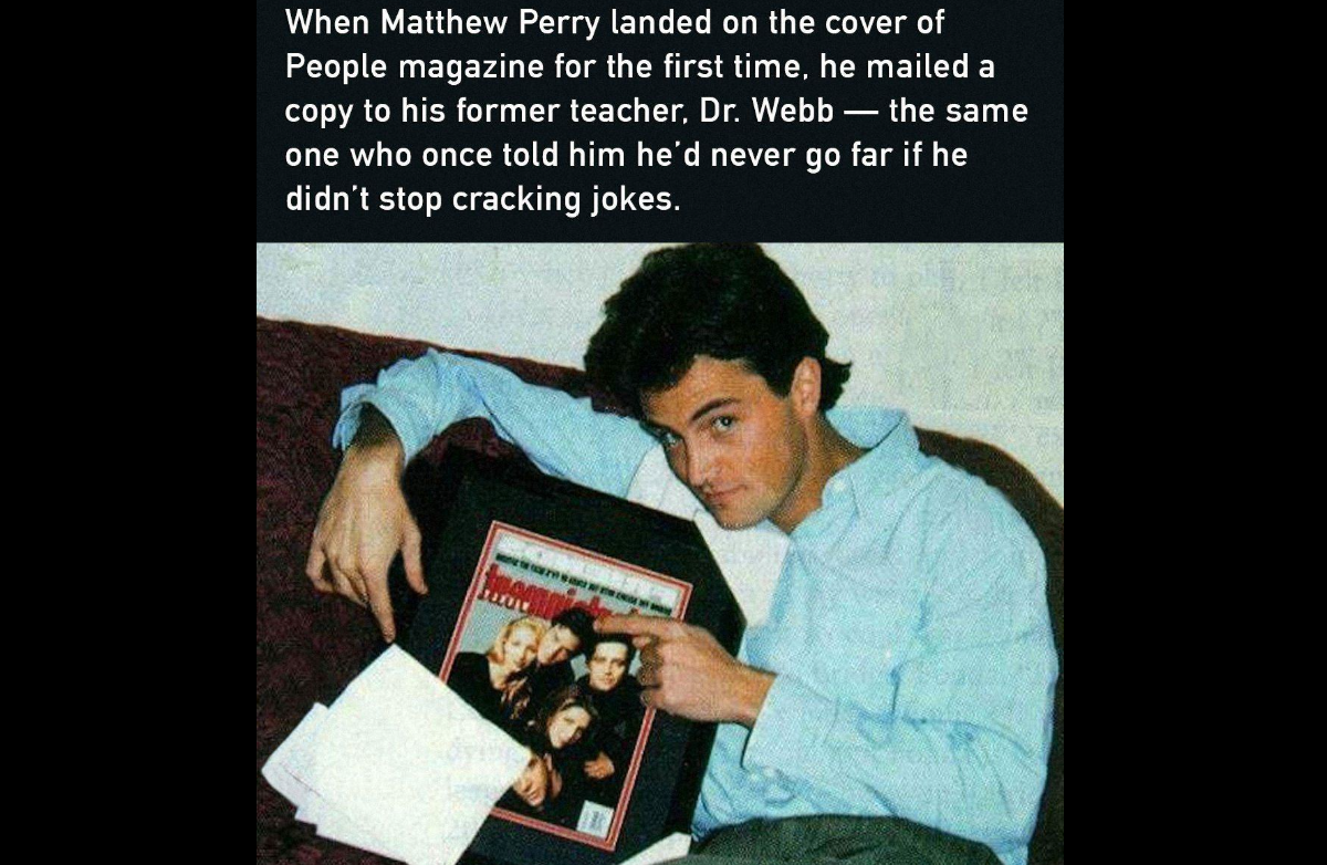Back in his school days, young Matthew Perry was the class clown β always cracking jokes, always making people laugh. ππ But not everyone believed in his dream. His teacher, Dr. Webb, once warned him, βIf you donβt take life seriously, youβll never go far.β ππ
