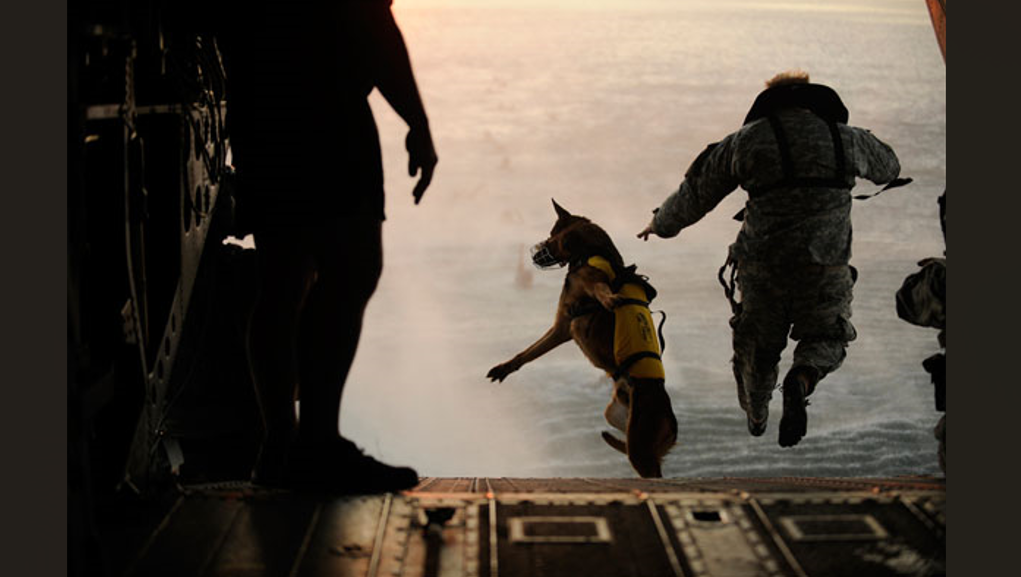 Chú chó nghiệp vụ phát hiện chất nổ được tời lên trực thăng HH-60G Pave Hawk của quân đội Mỹ