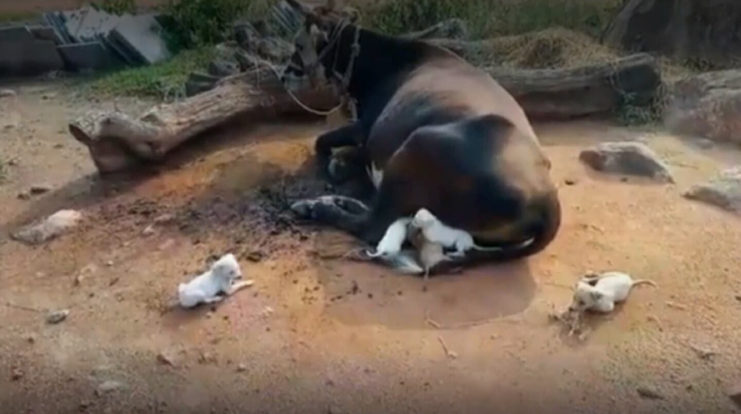 In this simple, yet profound act, the cow not only saved the lives of seven puppies but also gave us all a lesson in the power of kindness. It’s a beautiful reminder that love is a force that can break barriers, heal wounds, and bring light in the darkest of times. A tale of unlikely motherhood, it shows that true compassion has the power to change lives — regardless of who or what we are.