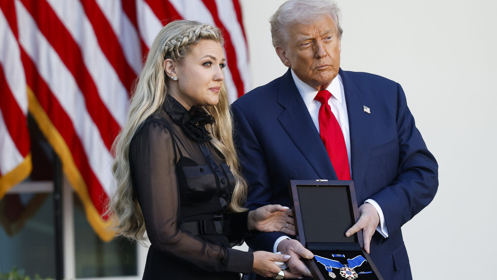 In a moving ceremony beneath the clear skies of the White House Rose Garden, President Donald Trump posthumously awarded Charlie Kirk the Presidential Medal of Freedom β the nationβs highest civilian honor. ποΈβ¨