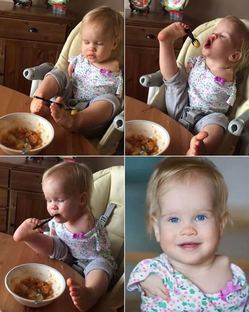 With patience, focus, and a joy that radiates from every movement, she has learned to feed herself using only her feet. While most toddlers struggle to keep a spoon upright, Vasilina moves with precision and grace, each bite a testament to her determination and resilience. Every motion tells a story of courage that words alone cannot capture — a story of a little girl rewriting the definition of possibility.